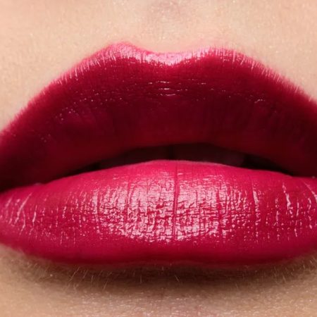 Deep burgundy satin lipstick delivering rich color, smooth glide, lasting comfort, and refined statement appeal.