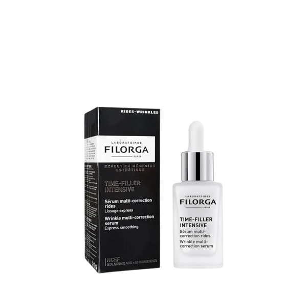 Filorga Time-Filler Intensive Multi-Correction Serum is an advanced anti-wrinkle treatment inspired by aesthetic medicine. Designed to visibly smooth all types of wrinkles—expression lines, deep-set wrinkles, surface creases, dryness-related lines, and neck wrinkles—this potent serum combines powerful peptides, hyaluronic acid, plant extracts, and skin-tightening polysaccharides. Its concentrated formula helps relax facial tension, plump the skin, and boost hydration for a more youthful appearance. In just seven days, skin looks firmer, smoother, and visibly rejuvenated. Ideal for use alone or alongside other products from the Filorga TIME-FILLER range.